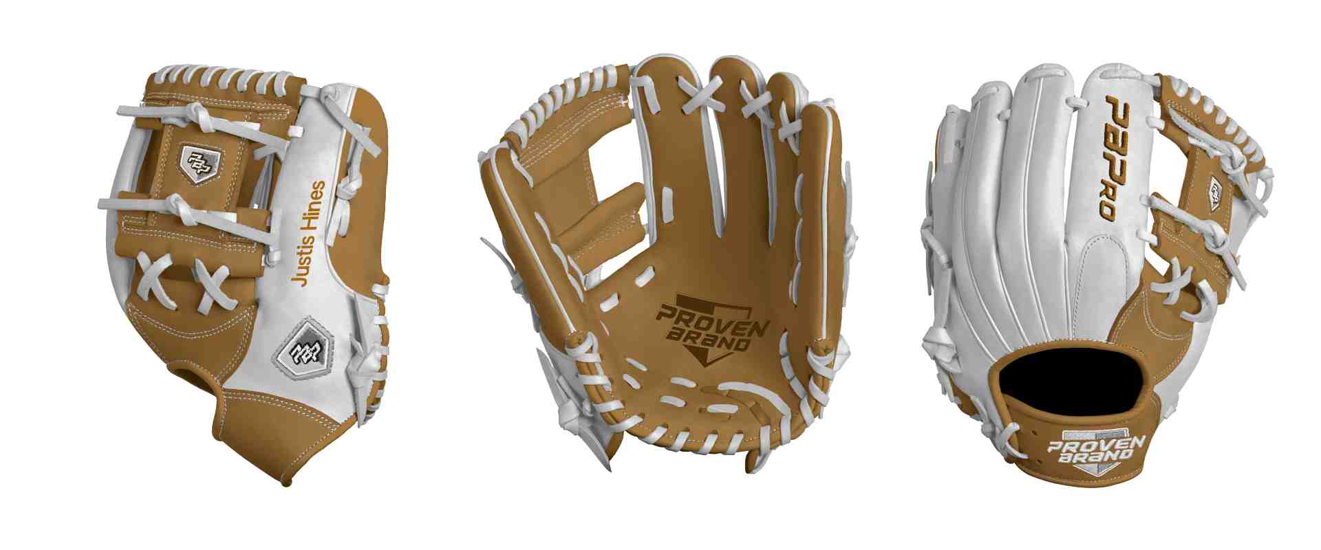 Category: PBPro Custom Product: Baseball Series: Phantom Series | USD 169.00 Glove Type: Fielders Size: 11.25" Finger Pad: With Finger Pad Web: Pro I Web Palm: Palm (Color: Tan) Back Shell Main: Back Shell Main (Color: White) Back Shell Accent: Back Shell Accent (Color: Tan) Web: Web (Color: Tan) Finger Pad: Finger Pad (Color: White) Welting: Welting (Color: White) Binding: Binding (Color: Tan) Lace: Lace (Color: White) Logo and Label-flat: Logo and Label-flat (Color: White) Stitch: Stitch (Color: White) Embroidery: Embroidery (Color: Tan) Hand Throw: Right Hand Thrower Lace Length: Long (will not show in customizer) Flex (will not show in customizer): Pro Flex: (Ideal for Pro Player who wants to have more control in forming the glove) Wrist Opening (will not show in customizer): Custom Wrist : (Player can put their wrist circumference in the remarks section and we'll adjust the fit on the wrist) Name: Justis Hines (Font Style: Pontano Sans, Font Color: Tan, Patch Color: N/A) Flag (Ring Finger): N/A Remarks: N/A