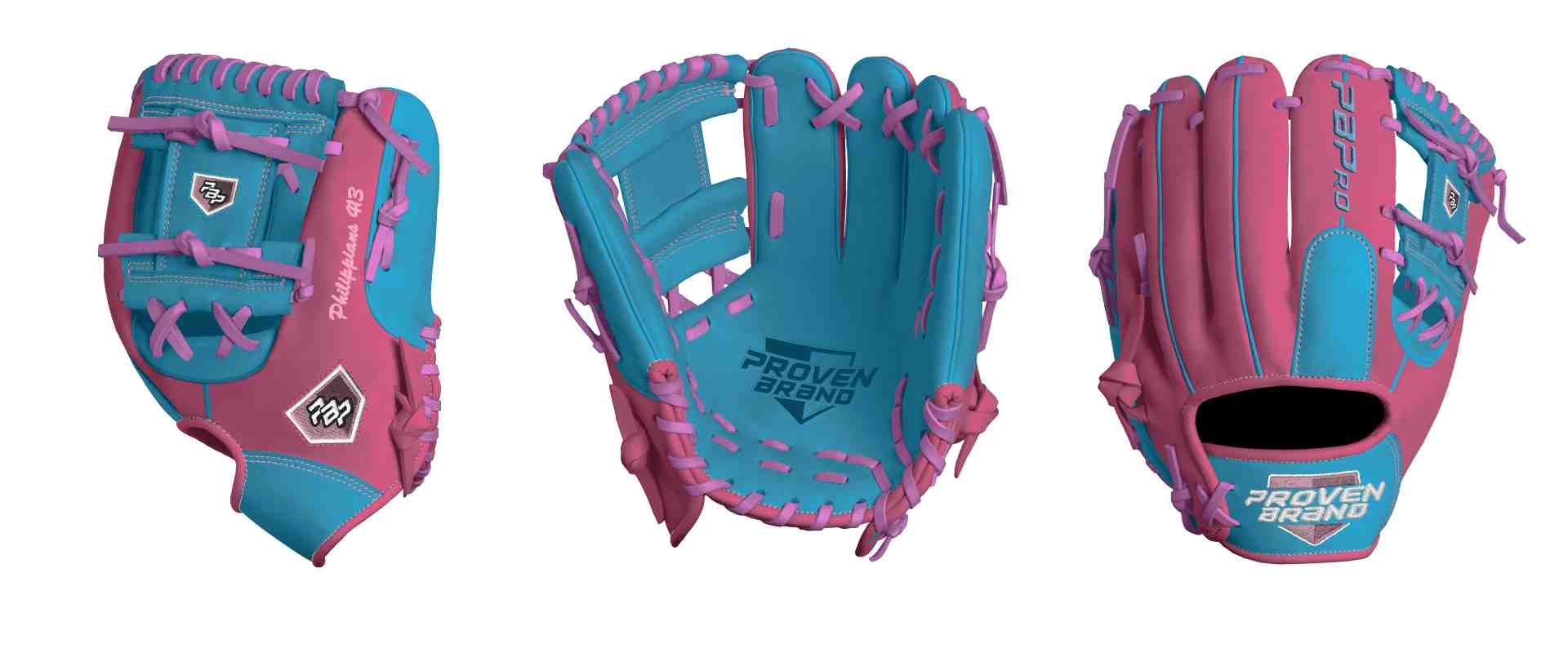 Category: PBPro Custom Product: Baseball Series: Phantom Series | USD 169.00 Glove Type: Fielders Size: 11" Finger Pad: With Finger Pad Web: Pro I Web Palm: Palm (Color: Sea Blue) Back Shell Main: Back Shell Main (Color: Shocking Pink) Back Shell Accent: Back Shell Accent (Color: Sea Blue) Web: Web (Color: Sea Blue) Finger Pad: Finger Pad (Color: Sea Blue) Welting: Welting (Color: Sea Blue) Binding: Binding (Color: Shocking Pink) Lace: Lace (Color: Pink (#EF73DB)) Logo and Label-flat: Logo and Label (Color: Carnation Pink) Stitch: Stitch (Color: Carnation Pink) Embroidery: Embroidery (Color: Columbia Blue) Hand Throw: Right Hand Thrower Lace Length: Normal Flex (will not show in customizer): Standard Flex: ( Ideal for Youth Player. Glove still needs to break in) Wrist Opening (will not show in customizer): Standard Wrist Name: Philippians 413 (Font Style: Brush Script MT, Font Color: Carnation Pink, Patch Color: N/A) Flag (Ring Finger): Georgia | USD 4.00 Remarks: N/A