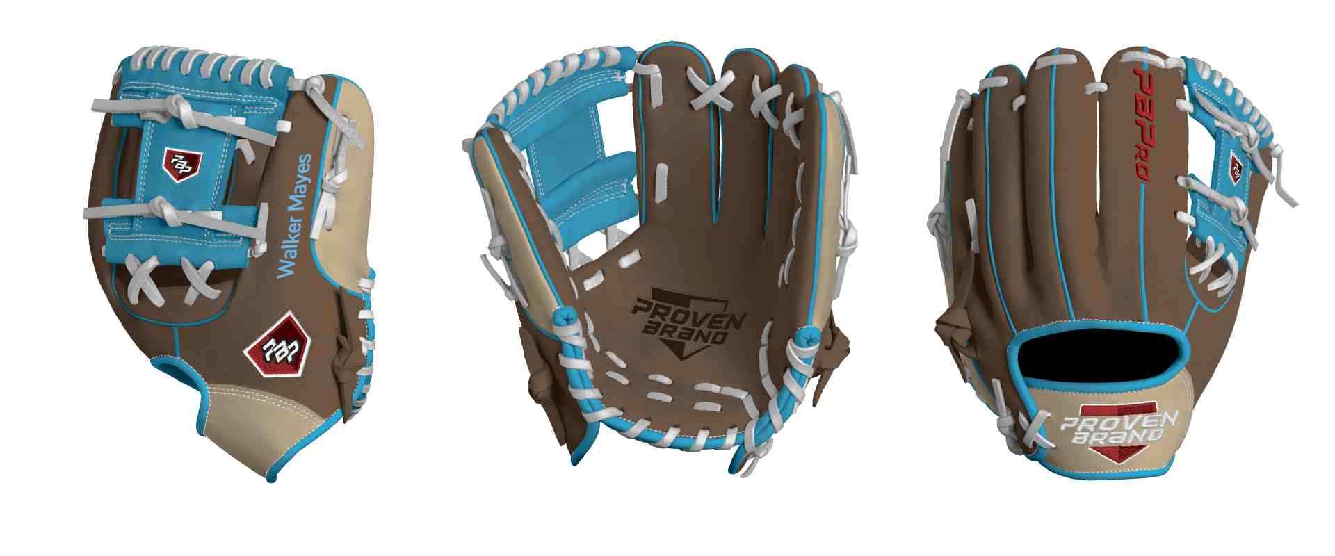 Category: PBPro Custom Product: Baseball Series: Phantom Series | USD 169.00 Glove Type: Fielders Size: 11" Finger Pad: Without Finger Pad Web: Pro I Web Palm: Palm (Color: Dark Brown) Back Shell Main: Back Shell Main (Color: Dark Brown) Back Shell Accent: Back Shell Accent (Color: Cream) Web: Web (Color: Sea Blue) Welting: Welting (Color: Sea Blue) Binding: Binding (Color: Sea Blue) Lace: Lace (Color: White) Logo and Label-flat: Logo and Label-flat (Color: Red) Stitch: Stitch (Color: White) Embroidery: Embroidery (Color: Red) Hand Throw: Right Hand Thrower Lace Length: Long (will not show in customizer) Flex (will not show in customizer): Standard Flex: ( Ideal for Youth Player. Glove still needs to break in) Wrist Opening (will not show in customizer): Custom Wrist : (Player can put their wrist circumference in the remarks section and we'll adjust the fit on the wrist) Name: Walker Mayes (Font Style: Pontano Sans, Font Color: Columbia Blue, Patch Color: N/A) Flag (Ring Finger): United States | USD 4.00 Remarks: Wrist size. 5 1/2 inches. 6 years old