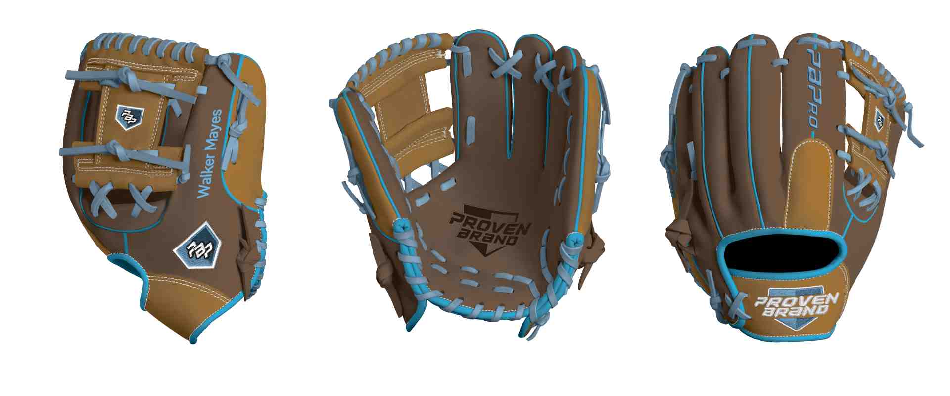 Category: PBPro Custom Product: Baseball Series: Phantom Series | USD 169.00 Glove Type: Fielders Size: 11" Finger Pad: With Finger Pad Web: Pro I Web Palm: Palm (Color: Dark Brown) Back Shell Main: Back Shell Main (Color: Dark Brown) Back Shell Accent: Back Shell Accent (Color: Tan) Web: Web (Color: Tan) Finger Pad: Finger Pad (Color: Tan) Welting: Welting (Color: Sea Blue) Binding: Binding (Color: Sea Blue) Lace: Lace (Color: Sky Blue (#7BAED3)) Logo and Label-flat: Logo and Label (Color: Columbia Blue) Stitch: Stitch (Color: White) Embroidery: Embroidery (Color: Columbia Blue) Hand Throw: Right Hand Thrower Lace Length: Long (will not show in customizer) Flex (will not show in customizer): Standard Flex: ( Ideal for Youth Player. Glove still needs to break in) Wrist Opening (will not show in customizer): Custom Wrist : (Player can put their wrist circumference in the remarks section and we'll adjust the fit on the wrist) Name: Walker Mayes (Font Style: Pontano Sans, Font Color: Columbia Blue, Patch Color: N/A) Flag (Ring Finger): South Carolina | USD 4.00 Remarks: 5 1/2 inch wrist. 6 years old