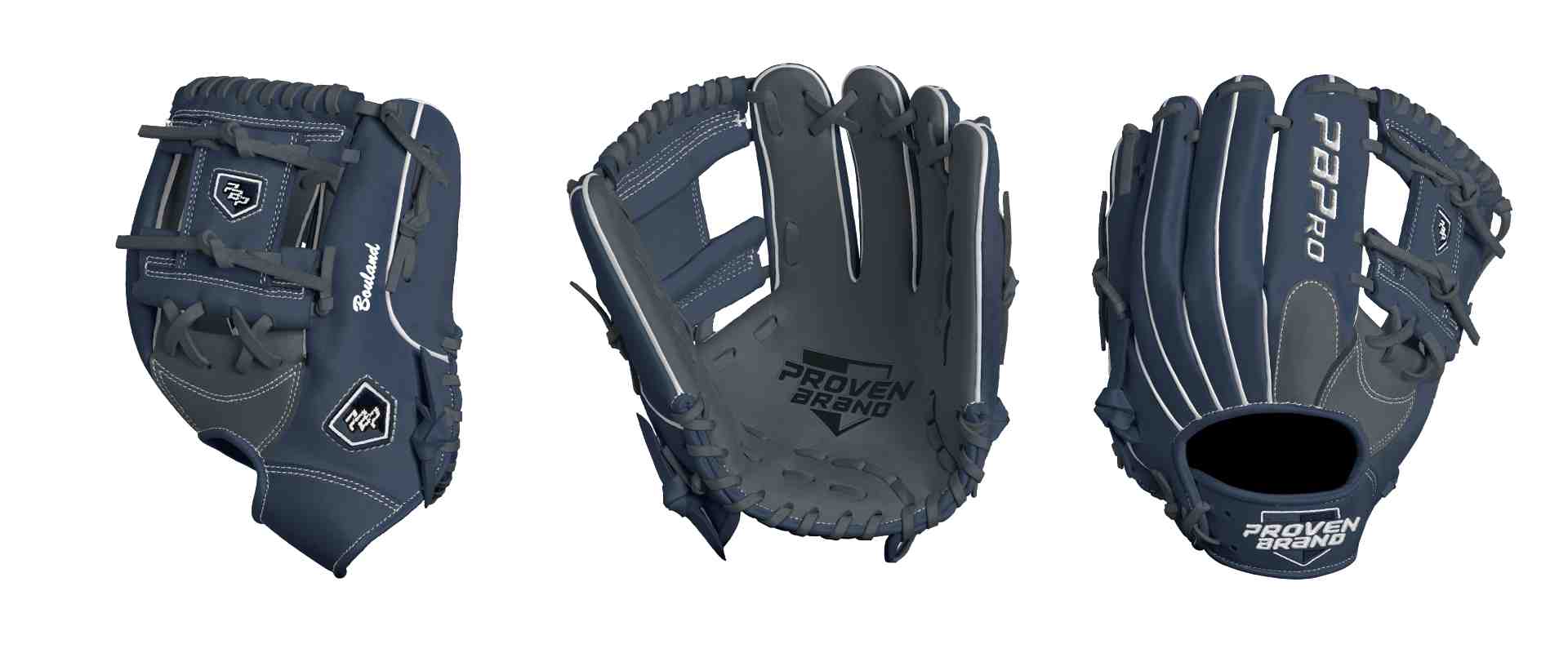 Category: PBPro Custom Product: Baseball Series: Travel Pro Series | USD 159.00 Glove Type: Fielders Size: 11.5" Finger Pad: With Finger Pad Web: Pro I Web Palm: Palm (Color: Steel Gray) Back Shell Main: Back Shell Main (Color: Navy) Back Shell Accent: Back Shell Accent (Color: Navy) Web: Web (Color: Navy) Finger Pad: Finger Pad (Color: Steel Gray) Welting: Welting (Color: White) Binding: Binding (Color: Navy) Lace: Lace (Color: Steel Gray) Logo and Label-flat: Logo and Label-flat (Color: Navy) Stitch: Stitch (Color: White) Embroidery: Embroidery (Color: White) Hand Throw: Right Hand Thrower Lace Length: Long (will not show in customizer) Flex (will not show in customizer): Standard Flex: ( Ideal for Youth Player. Glove still needs to break in) Wrist Opening (will not show in customizer): Standard Wrist Name: Bouland (Font Style: Brush Script MT, Font Color: White, Patch Color: N/A) Flag (Ring Finger): N/A Remarks: N/A