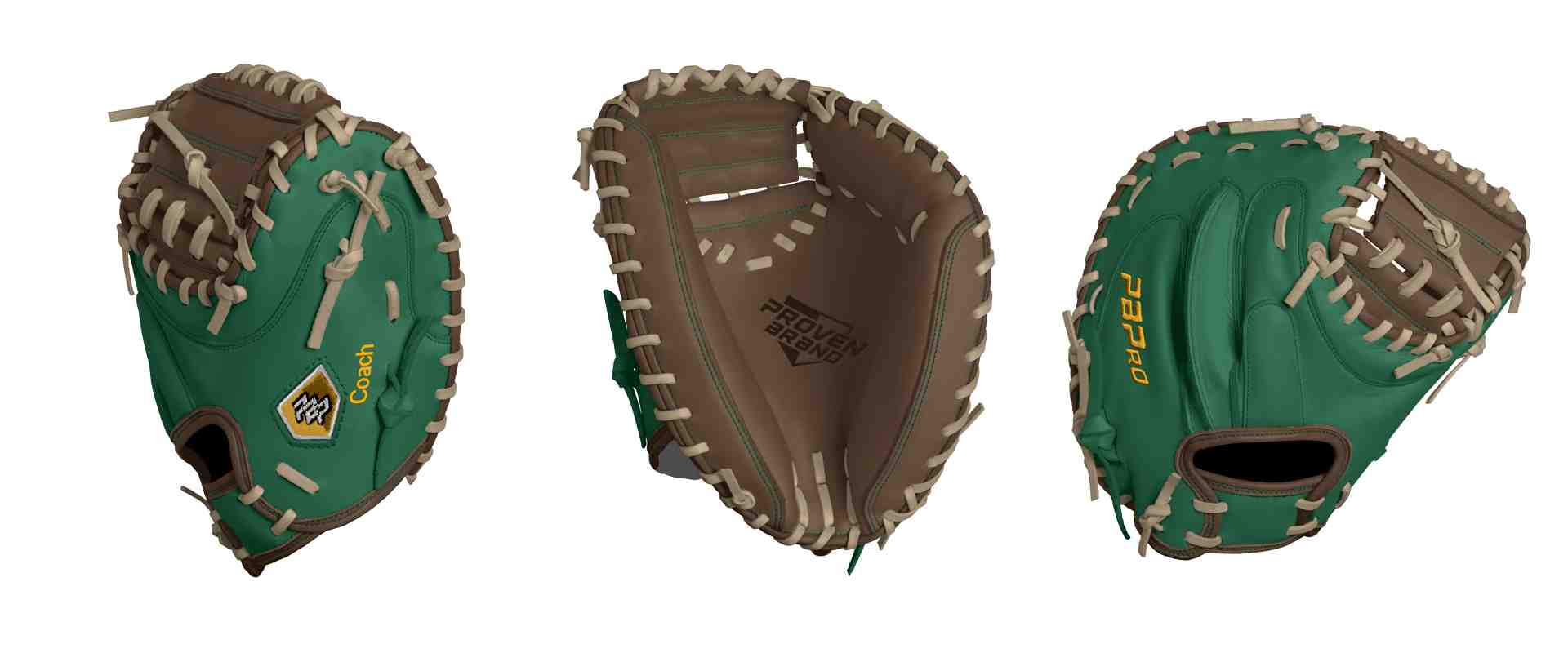 Category: PBPro Custom Product: Baseball Series: Travel Pro Series | USD 159.00 Glove Type: Mitts Size: 33.5" Catcher's Mitt Palm: Palm (Color: Dark Brown) Back Shell: Back Shell (Color: Green) Web: Web (Color: Dark Brown) Binding: Binding (Color: Dark Brown) Lace: Lace (Color: Cream) Logo: Logo (Color: Golden Yellow) Stitch: Stitch (Color: Green) Embroidery: Embroidery (Color: Golden Yellow) Hand Throw: Right Hand Thrower Lace Length: Normal Name: Coach (Font Style: Pontano Sans, Font Color: Golden Yellow, Patch Color: N/A) Flag (Ring Finger): N/A Remarks: N/A